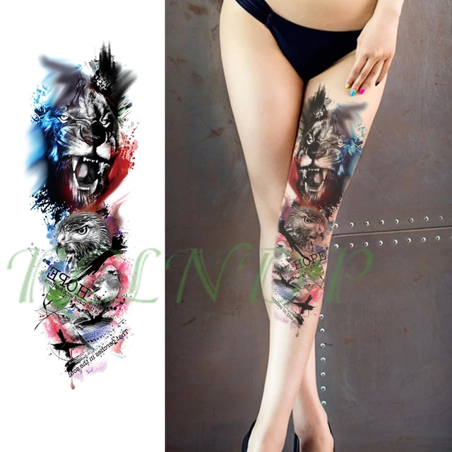 Waterproof Temporary Tattoo Sticker Roaring Lion Eagle Bird Letter Colour Full Arm Large Fake Tatto Flash Tatoo For Men Women Aliexpress Mobile